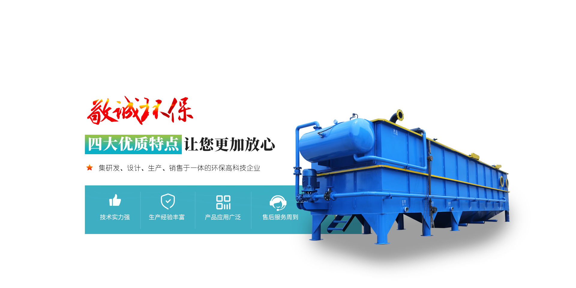 公司本著“以質量求生存,以信譽求發(fā)展”的經營理念,制造環(huán)保精品,為環(huán)保事業的發(fā)展與開拓創(chuàng)新竭誠服務。公司主要生產:一體化污水處理設備